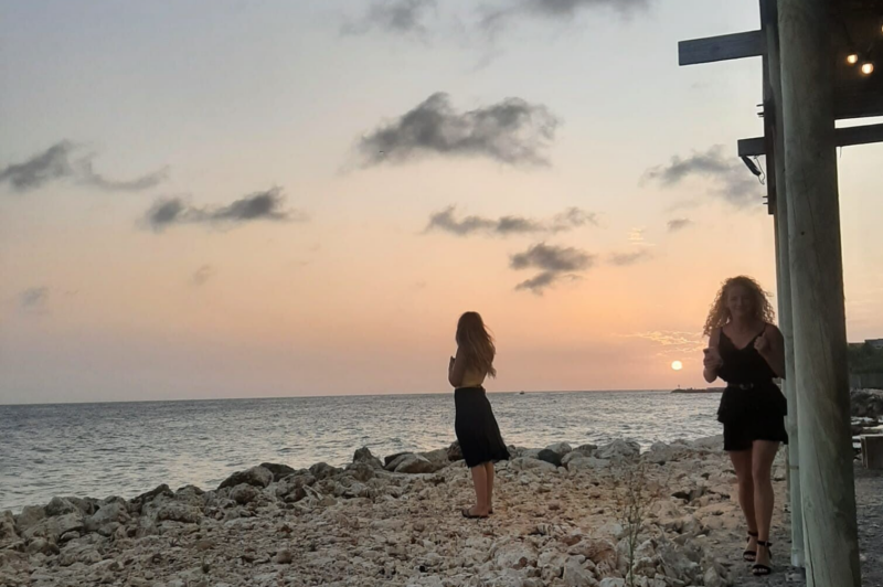 Zaterdag 1 april ben ik samen met mijn ouders en Loeka naar klein Curaçao gegaan. We hadden onze tour geboekt bij irie tours, aangezien deze een van de meest betaalbare opties was. Om 7 uur zaten Loeka en ik al in de auto om mijn ouders op te gaan halen bij hun resort. Daarna konden we door naar de haven waar onze boot al klaar lag. We waren er rond half 8 en moesten nog wachten tot het 8 uur was. Toen mochten we eindelijk op de boot en na een safety briefing was het tijd om te vertrekken! De heenweg was heeeeeeeel heftig kan ik je vertellen! We vertrokken redelijk rustig, maar toen we eenmaal uit de baai waren en op open zee kwamen werd heet heftig. We kwamen helaas in een storm terecht met veel/harde wind en regen. Letterlijk zodra we de baai uit gingen werd het bootje achterop even extra vast gebonden waardoor wij dachten "oh oh foute boel". Er was nergens zon te bekennen en de golven waren bijna 5 meter hoog. We waren compleet doorweekt, maar binnen zitten kon niet aangezien ik dan zeeziek werd. Dus de enige optie was buiten blijven staan in de regen en wind, maar daar kreeg ik het dus super koud door. Eenmaal aangekomen was het ook nog best koud en we moesten natuurlijk ook een stukje door het water lopen om op het strand te komen. Hierdoor werd ik weer extra doorweekt en koud (alsof het niet nog erger kon). Op het eiland zelf stond er heel veel wind dus in het begin moesten we echt nog even opwarmen met onze handdoek om ons heen. Zodra we het iets warmer hadden zijn we naar de vuurtoren en het scheepswrak gegaan. Hiervoor was het wel heel chill dat het niet super heet was omdat je dan in de volle zon zou lopen. Ook was het scheepswrak extra mooi dankzij de hogen golven die er tegen aan klapten. Toen zijn we terug naar het strand gelopen en daar hebben we tot ongeveer 12:30 gelegen voordat we terug geroepen werden voor de lunch. Op de boot hadden we eindelijk zon met de lunch dus dat was top! Eenmaal terug op het strand hebben we nog lekker kunnen zonnen (waardoor ik helaas wel flink verbrand ben geraakt) en kunnen snorkelen in het water. Helaas was het rond 15:00 weer tijd om terug te varen naar Curaçao. Gelukkig was de terug vaart heel rustig en konden we gewoon relaxed in het zonnetje zitten met een wijntje in onze hand :)