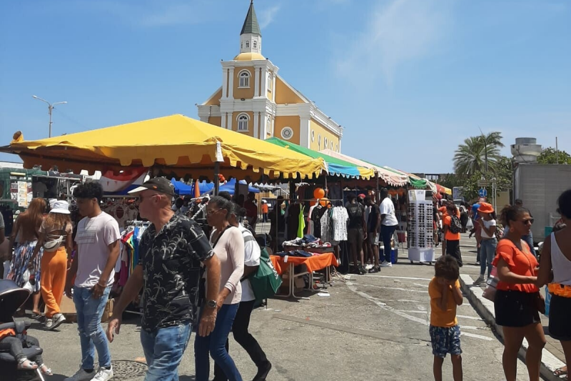 De volgende dag zijn we naar de markt gegaan in Willemstad. Hier hadden ze echt super veel kraampjes (i.p.v. kleedjes) met allemaal verschillende soorten dingen. Daar zijn we doorheen gelopen en af en toe ene winkeltje in gegaan, want loeka en ik wilde nog graag een Curaçao shirt kopen (dat is gelukt). Ik kan je wel vertellen dat ze koningsdag hier uitgebreid, groots en goed vieren.